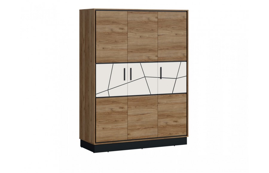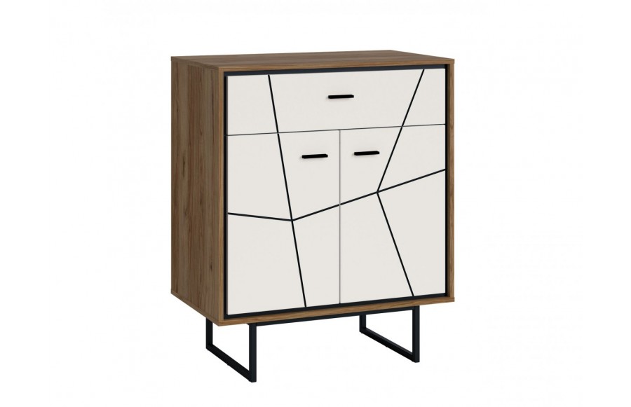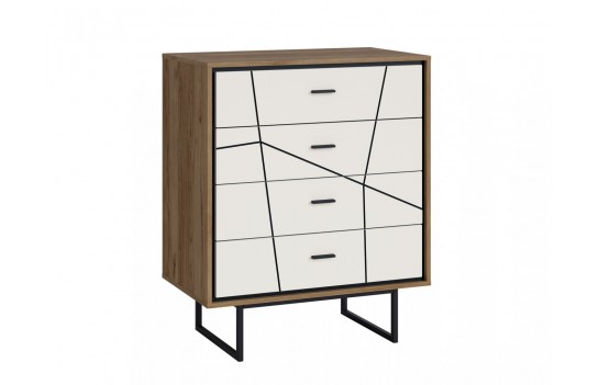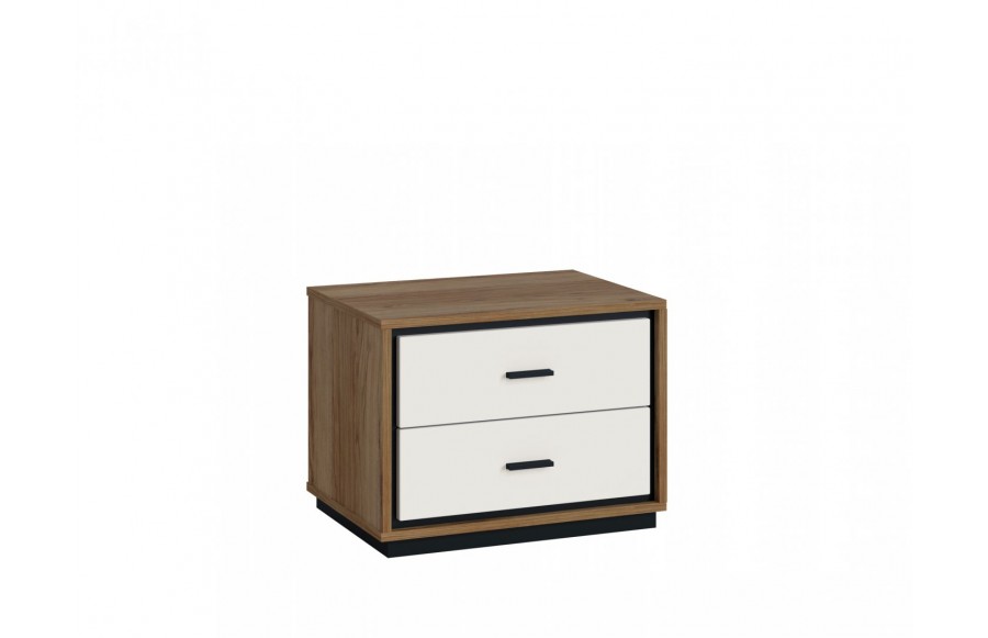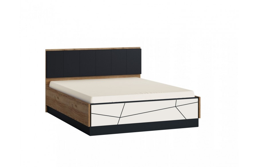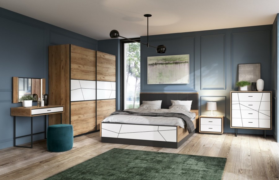 Sypialnia BROLO - łączy nowoczesną formę z funkcjonalnością, zapraszając do świata przytulnej oryginalności. Doskonale pasuje do różnorodnych aranżacji wnętrz, umożliwiając tworzenie harmonijnych zestawień kolorystycznych. To esencja nowoczesności, dzięki zastosowaniu innowacyjnych materiałów i niepowtarzalnego wzornictwa. Fronty mebli z kolekcji BROLO to prawdziwa innowacja. Wykonane z płyty MDF, barwionej w masie i pokrytej błyszczącą białą folią, następnie poddane frezowaniu, tworzą geometryczne wzory, które odkrywają czarne wnętrze płyty, nadając kolekcji wyjątkowego charakteru. Drewniany dekor korpusu dodaje ciepła i tworzy niepowtarzalny design. Praktyczne rozwiązania, takie jak pojemne szafy BROLO, ułatwiają organizację przestrzeni, a elastyczność konfiguracji kolekcji pozwala idealnie dostosować meble do wymiarów i kształtu pomieszczenia. Łóżko BROLO z pojemnikiem to wygodne i praktyczne rozwiązanie, które umożliwia optymalne wykorzystanie przestrzeni, szczególnie w sypialniach, gdzie spędzamy więcej czasu w ciągu dnia. Szafki nocne, komody, toaletki i lustro dopełniają kompletną aranżację sypialni, zapewniając miejsce na przechowywanie i funkcjonalność, jednocześnie zachowując spójny styl. BROLO świetnie wkomponuje się w wystrój sypialni urządzonej w stylu industrialnym, minimalistycznym oraz glamour. Sypialnia BROLO to nie tylko zbiór mebli, ale również manifestacja elegancji, tworząca wnętrza pełne ciepła i przytulności.