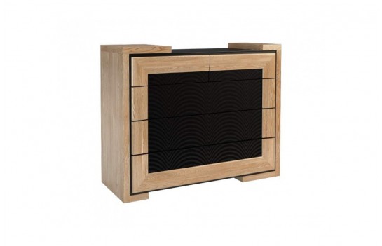 Sypialnia CORINO - to połączenie szlachetności i nowoczesności, tworząc niezwykle wyrafinowany zestaw mebli. Kolekcja CORINO to modułowe meble o dynamicznych oraz geometrycznych formach, które efektownie kontrastują z różnorodnymi materiałami. Wysokiej jakości lite drewno dębowe i naturalna okleina dębowa spotykają się z eleganckim szkłem i wykwintną tkaniną obiciową, nadając kolekcji niepowtarzalny charakter. Meble Kolekcji CORINO dostępne są w dwóch zmysłowych kolorach - dąb naturalny zestawiony z czernią oraz orzech z kontrastowym akcentem czerni. Nowoczesne rozwiązania, jak system push-to-open, zapewniają płynne otwieranie szuflad i drzwi, podkreślając funkcjonalność tej kolekcji. Sypialnia CORINO to oaza przytulności, powrót do natury i maksymalnej użyteczności. Łóżka występują w czterech różnych rozmiarach oraz dwóch wariantach - z ławeczką lub bez - i pozwalają idealnie dopasować się do każdej sypialni. Wybór obejmuje również szafy, komody, szafki nocne oraz toaletki. Kolekcja CORINO to emanująca nowoczesnością oraz elegancją sypialnia, która z pewnością zostawi trwałe wrażenie na użytkownikach.