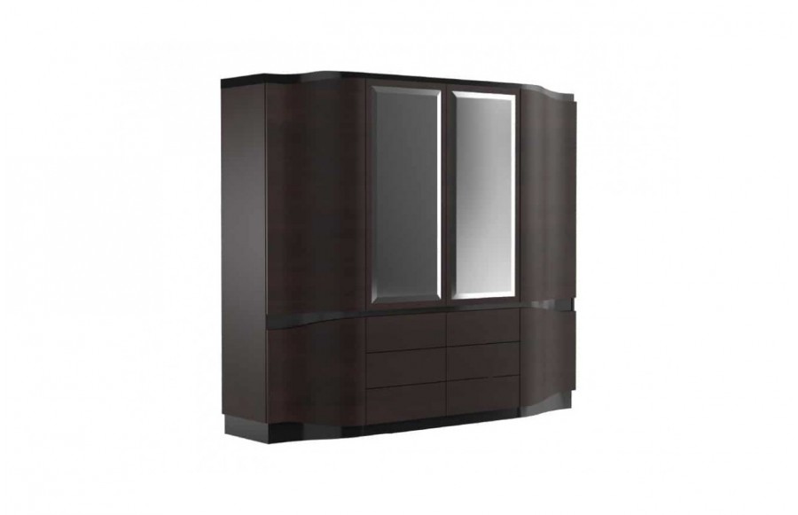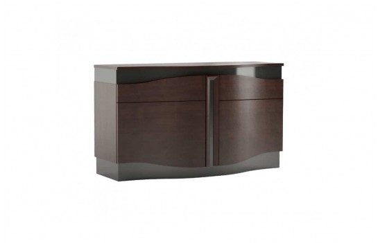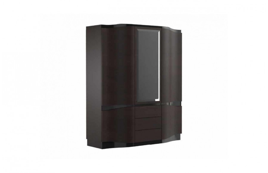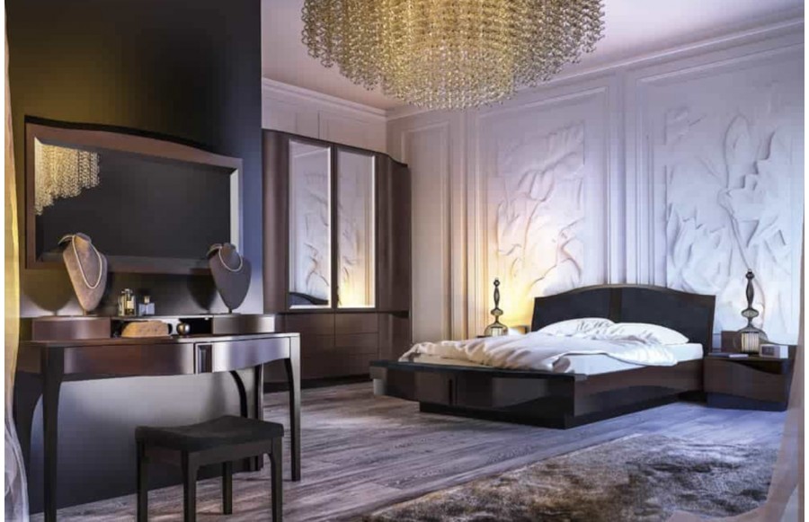 Sypialnia DIUNA - to niezwykła kolekcja, która łączy wysmakowany design z funkcjonalnością. To propozycja sypialni, która zachwyca nie tylko swym wyglądem, ale także doskonałą precyzją wykonania. Każdy element tej kolekcji emanuje elegancją i klasyką, tworząc atmosferę, która intryguje i wciąga. W kolekcji DIUNA znajdziesz meble stworzone z naturalnych materiałów, oddające charakter i piękno drewna. Fronty, wykonane z litego drewna oraz okleinowanej czereśni amerykańskiej, pięknie prezentują się w klasycznym odcieniu czekoladowego brązu. Jednak to nie wszystko – wyjątkowy design tej kolekcji to efekt połączenia falistych frontów i błyszczącej, lakierowanej czarnej wstawki. Gra światła na zaokrąglonych powierzchniach sprawia, że meble zyskują niezwykłą głębię i efektowność. Kolekcja DIUNA to przemyślana aranżacja wnętrza, która przyciąga spojrzenia i dostarcza satysfakcji z użytkowania. Sypialnia urządzona w tej kolekcji staje się eleganckim apartamentem, zarówno w domu, jak i w hotelu. Łóżko DIUNA z praktyczną ławeczką i ozdobnym tapicerowanym zagłówkiem gwarantuje spokojny odpoczynek. Aby dopełnić przestrzeń, możesz wybrać zgrabne szafki nocne, które stanowią praktyczny oraz estetyczny dodatek. W kolekcji DIUNA znajduje się również elegancka toaletka z lustrem oraz szufladami otwieranymi w systemie push-to-open, zapewniającym wygodę i stylowy wygląd. W kolekcji dostępne są również różnorodne rodzaje szaf i komód, pozwalając dostosować wystrój do indywidualnych preferencji klienta. DIUNA to wyrafinowana kolekcja, która wspaniale łączy niebanalną elegancję i szyk.