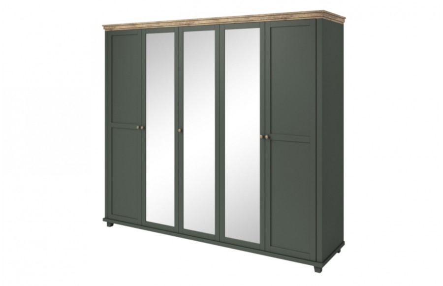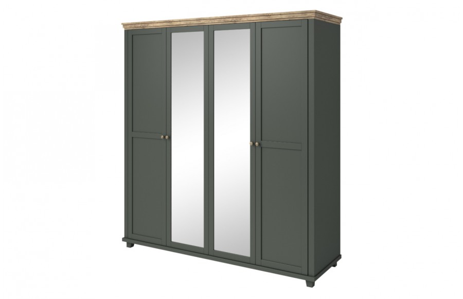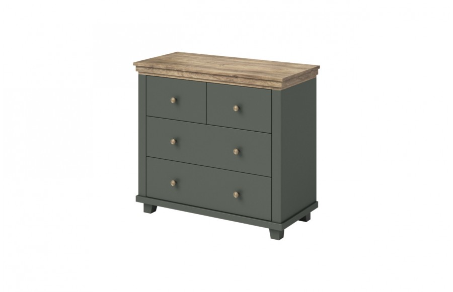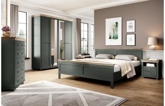 Sypialnia EVORA - to hołd dla klasyki, zachowawczości oraz niezwykłej elegancji. Kolekcja zaprasza do świata, gdzie harmonia formy i stylu tworzy niezwykłe wnętrza. Aby dać Ci wybór, ta wyjątkowa sypialnia została stworzona w dwóch wersjach kolorystycznych. Elegancka ciemna zieleń oraz subtelna biel (abisco ash) to paleta kolorów, które stanowią tło dla unikatowego, drewnianego dekoru wieńca górnego - dąb. Dodatkowo, subtelne uchwyty w kolorze starego złota podkreślają wyjątkowy charakter kolekcji. Sypialnia oferuje całą gamę mebli, które tworzą spójną całość, odzwierciedlającą klasyczny, a zarazem nowoczesny styl. Znajdziesz tu piękne łóżka o wymiarach 140, 160 i 180 x 200 cm, dostępne w dwóch wariantach kolorystycznych. Ponadto, kolekcja zawiera różnorodne szafy, takie jak trzydrzwiowa szafa o szerokości 155 cm z lustrem i szufladami, czterodrzwiowa szafa o szerokości 200 cm z lustrem oraz pięciodrzwiowa szafa o szerokości 246 cm z trzema lustrami. Dodatkowo, stolik nocny z szufladami, mała komoda 90 cm z czterema szufladami oraz wysoka komoda 90 cm z sześcioma szufladami, doskonale wpisują się w różne aranżacje wnętrz. Kolekcja EVORA nie tylko sprawdzi się w sypialni, ale również w salonie czy pokoju dziennym, tworząc przestrzeń pełną uroku i harmonii.