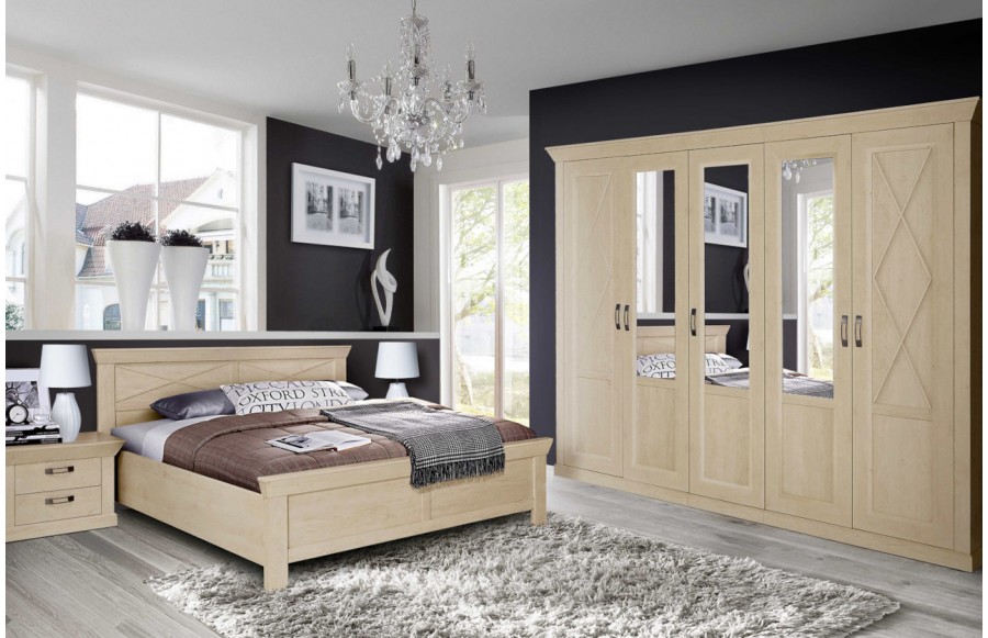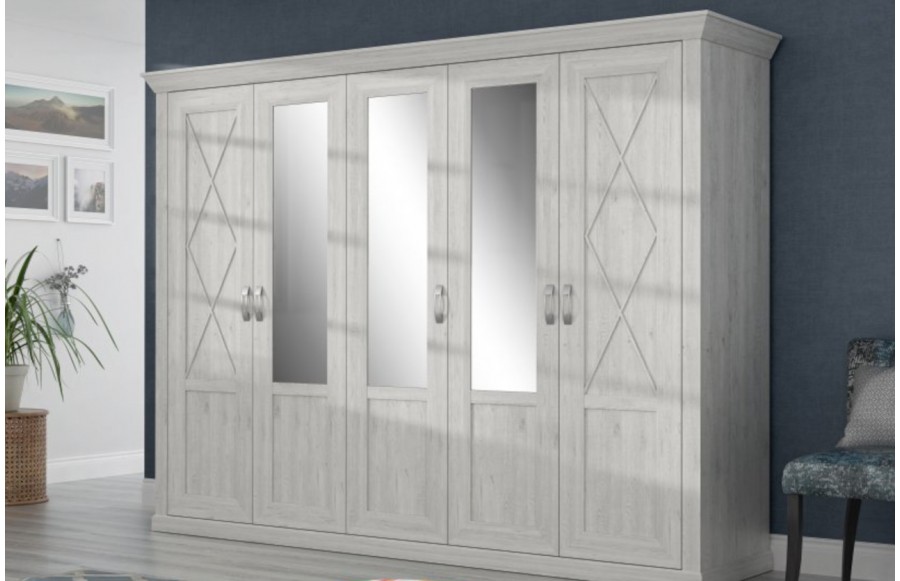 Sypialnia KASHMIR - to kolekcja nawiązująca do romantycznego stylu prowansalskiego. Krzyżowe elementy dekoracyjne są sercem całej kolekcji, zdobiąc przeszklone witryny oraz fronty mebli. Solidnie umieszczone na masywnych nóżkach, meble KASHMIR emanują trwałością i elegancją. Łóżko z serii mebli KASHMIR, w wyjątkowym wybarwieniu Pinia Biała, to kwintesencja wygody i stylu. Jego szerokie, starannie stylizowane ramy tworzą przytulne schronienie, a zagłówek zdobiony krzyżowymi szprosami dodaje mu niepowtarzalnego uroku. Biała dekoracja, odtwarzająca efekt postarzanego drewna, wprowadza szlachetność oraz klasykę. Ten mebel emanuje prowansalskim duchem dzięki widocznym słojom drewna oraz szerokim bokom i ozdobnym wieńcom. Ponadto, łóżko jest sprzedawane bez materaca i wkładu, dając Ci swobodę wyboru tych elementów według Twoich preferencji. Z kolekcji KASHMIR można stworzyć całą sypialnię - od szafy ubraniowej 2-drzwiowej po szafę 5-drzwiową, komody i wiele innych. Pozwól, by meble KASHMIR wkomponowały się w całą aranżację sypialni lub salonu, przynosząc do wnętrza nutę francuskiego uroku i komfortu.