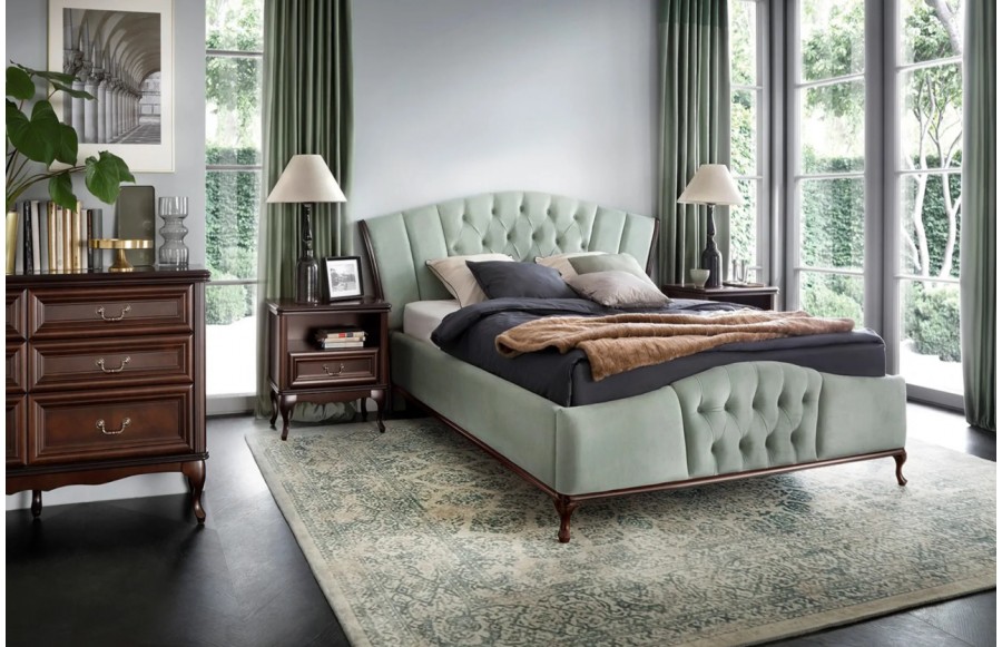 Sypialnia WERSAL - to niezwykły zestaw, który przeniesie Cię w świat klasyki i wyjątkowej formy. Delikatnie gięte fronty oraz mosiężne uchwyty tworzą atmosferę pełną elegancji i luksusu. Te klasyczne meble o perfekcyjnym wykończeniu wprowadzą do Twojego wnętrza błogą harmonię. Piękno kolekcji WERSAL podkreśla wyjątkowy wybór materiałów najwyższej jakości. Elementy drewniane wykonane z olchy zapewniają trwałość i elegancję, a czereśniowa naturalna okleina otacza meble, podkreślając ich wyjątkowy charakter. Wybierając spośród odcieni tofii, venge, białego, białego patyny czy kremu, dostosujesz sypialnię WERSAL do swoich preferencji. Sypialnia WERSAL oferuje cztery różne rodzaje łóżek oraz szafy w różnych rozmiarach, komody, toaletki, lustra, szafki nocne, ławeczki i taborety. To wszechstronna kolekcja, która pozwoli Ci stworzyć swój własny, królewski zakątek w Twoim domu. Sypialnia WERSAL to więcej niż meble – to miejsce, w którym codzienny wypoczynek nabiera luksusowego wymiaru. Ciesz się nie tylko komfortem, ale także pięknem, które będzie Cię zachwycać przez długie lata.