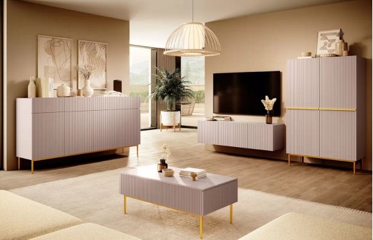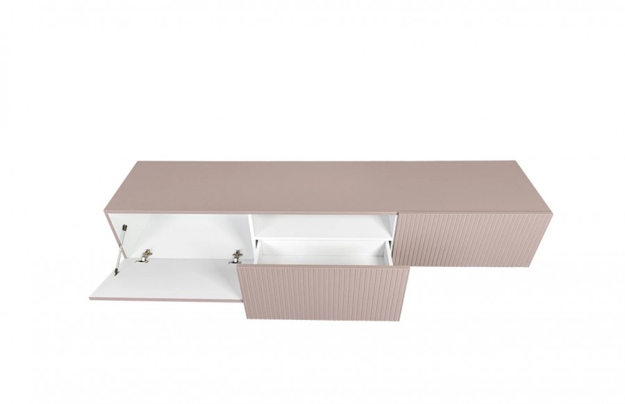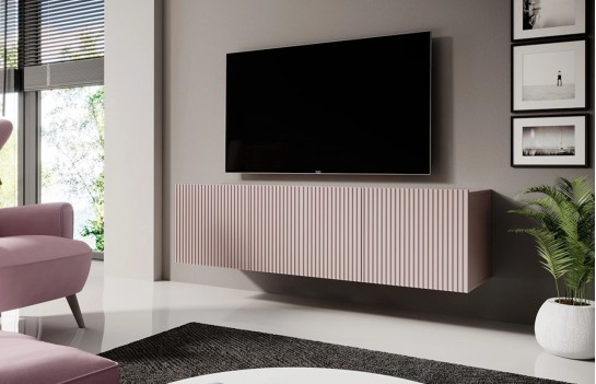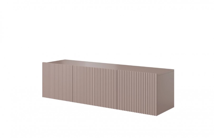 Szafka RTV NICOLE WISZĄCA 150 - w wersji wiszącej zachwyca efektownym ryflowanym dekorem, który nadaje meblowi niepowtarzalnego charakteru. To nie tylko piękny element wystroju, ale także funkcjonalne rozwiązanie do przechowywania. Szafka wyposażona jest w dwie boczne, uchylne szafki i szufladę, co zapewnia mnóstwo miejsca na przechowywanie. Teraz Twój sprzęt multimedialny znajdzie swoje idealne miejsce. Wisząca forma szafki doskonale wkomponuje się w Twoje wnętrze, pozostawiając wolną przestrzeń na podłodze. To nie tylko dodaje elegancji, ale również ułatwia utrzymanie czystości, umożliwiając swobodne poruszanie się odkurzaczem samojezdnym. Wybierając szafkę RTV NICOLE, inwestujesz w mebel najwyższej jakości, który posłuży Ci przez wiele lat, doskonale łącząc funkcjonalność i estetykę.