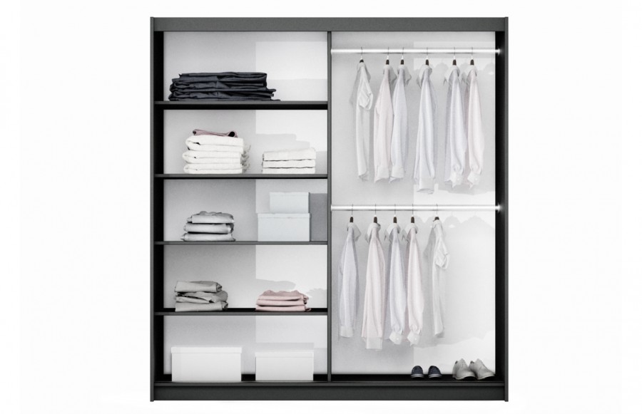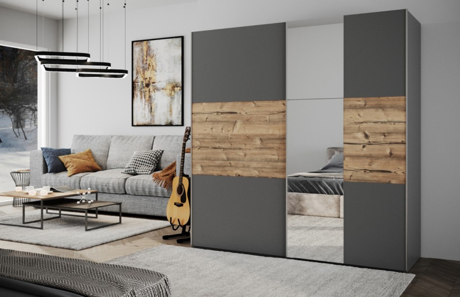 Szafa BASTIA LUX - nowoczesna szafa przesuwna. To doskonały wybór dla sypialni, garderoby, przedpokoju czy pokoju dziennego. Jej wnętrze jest pojemnie i posiada wystarczającą ilość miejsca na ubrania oraz inne niezbędne akcesoria. Nietypowa kolorystyka sprawia, że szafa Bastia Lux pięknie prezentuje się we wszystkich aranżacjach.