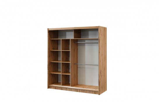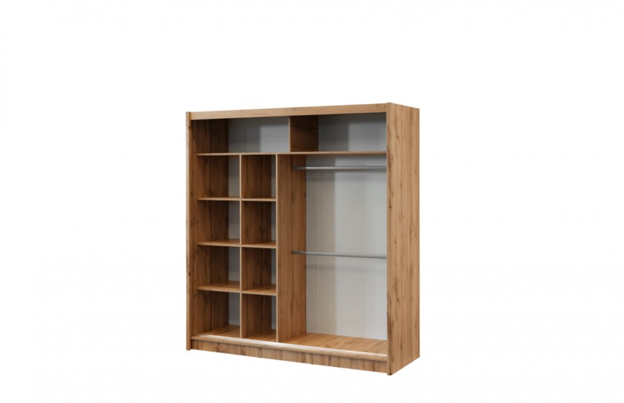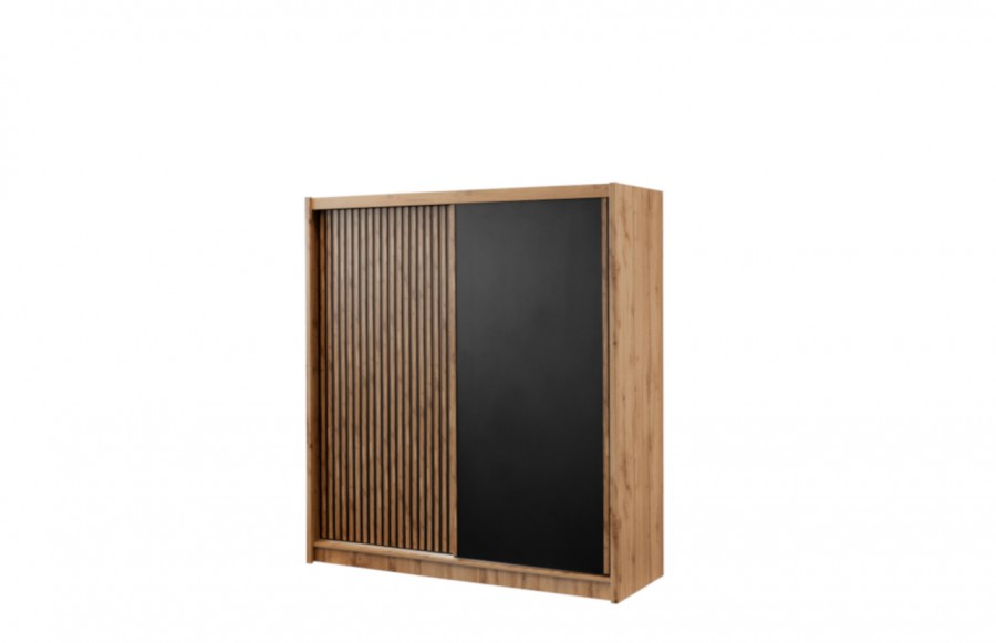 Szafa LONDON 203 - to nowoczesne rozwiązanie, które doskonale komponuje się z różnymi stylami, takimi jak industrialny, nowoczesny czy loftowy. Jej wnętrze zostało zaprojektowane z myślą o funkcjonalności i codziennym użytkowaniu, co jest zgodne z obowiązującymi trendami. Szafa wyróżnia się nowoczesnym designem, ozdobnymi lamelami oraz dużym lustrem, które dodają jej uroku. Wnętrze jest przemyślane, zawiera pojemne półki do przechowywania rzeczy, praktyczne drążki na wieszaki, a także oferuje dużą pojemność i funkcjonalność. Szafa przesuwna LONDON 203 to doskonałe połączenie stylu, elegancji oraz praktyczności, idealnie wpisujące się w obecne trendy wnętrzarskie.