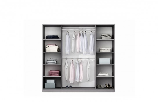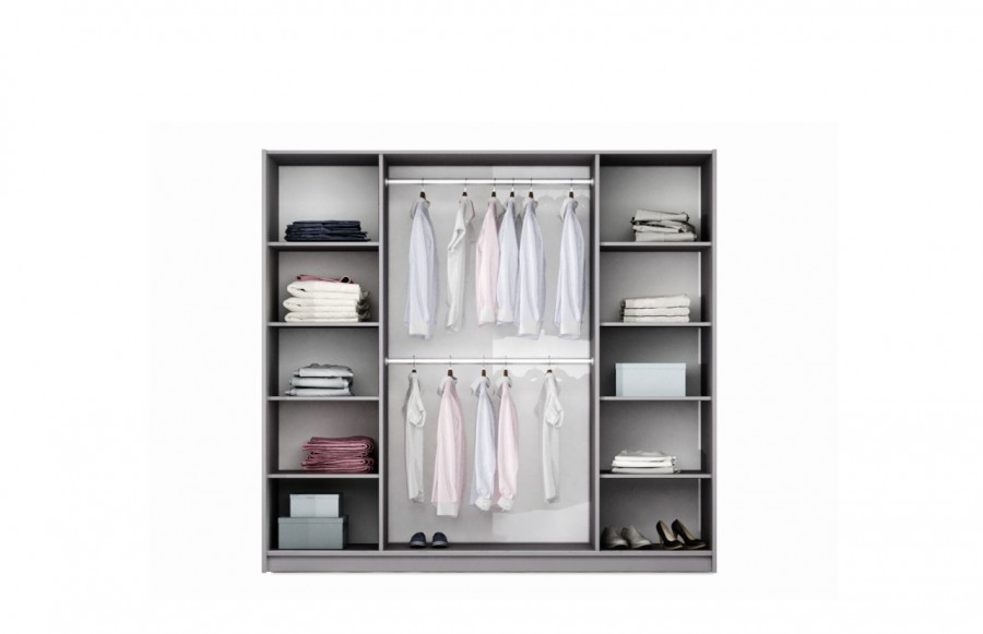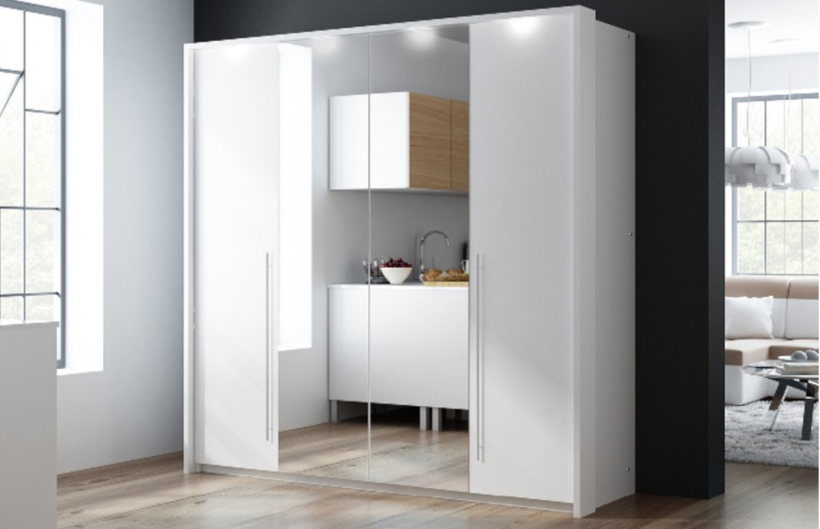 Szafa BREMA 210 - to mebel o nowoczesnym wzornictwie i dużej funkcjonalności. Fronty drzwi dostępne są w opcji z lustrami oraz z płyty laminowanej w kolorze białym matowym lub odcieniu lava. Drzwi są podwieszane na solidnych okuciach HETTICH, co zapewnia płynne otwieranie i zamykanie. Dodatkowo szafa posiada dwie praktyczne szuflady, oświetlenie punktowe LED, ozdobną listwę, dwa drążki i półki. To mebel, który łączy nowoczesny design z funkcjonalnością, nadając wnętrzu wyjątkowy charakter.