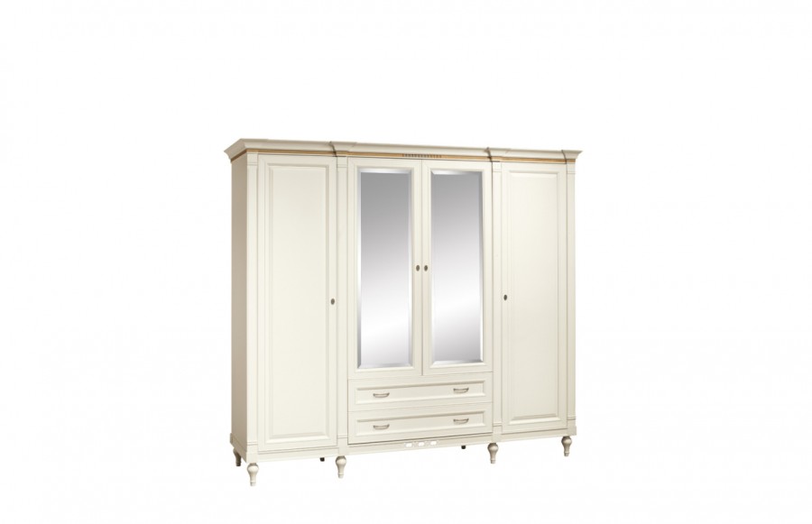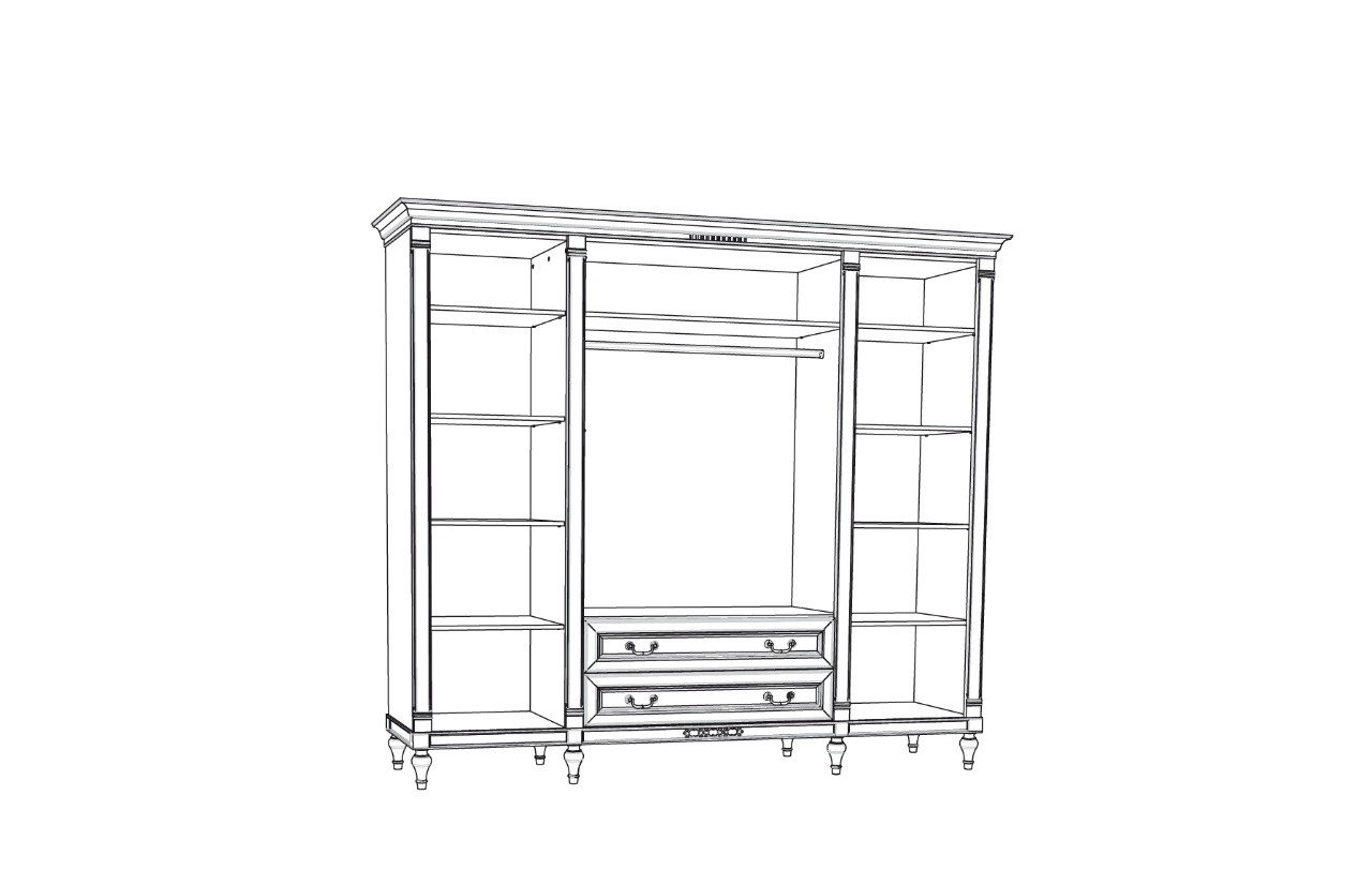 Szafa FLORECJA 4D - to kolekcja dedykowana osobom ceniącym elegancję i ponadczasowy klasyczny styl. Jej delikatne linie i wykwintne zdobienia nadają meblom niepowtarzalnego charakteru, sprawiając, że idealnie wpisują się w każde wnętrze. Zestaw mebli wyróżnia się połączeniem waniliowych frontów, ciemnego dębowego blatu oraz metalowych okuć, co podkreśla ich ponadczasowy charakter. Bogactwo dostępnych brył pozwala na aranżację tej kolekcji w różnych pomieszczeniach, takich jak jadalnia, sypialnia czy pokój dzienny.