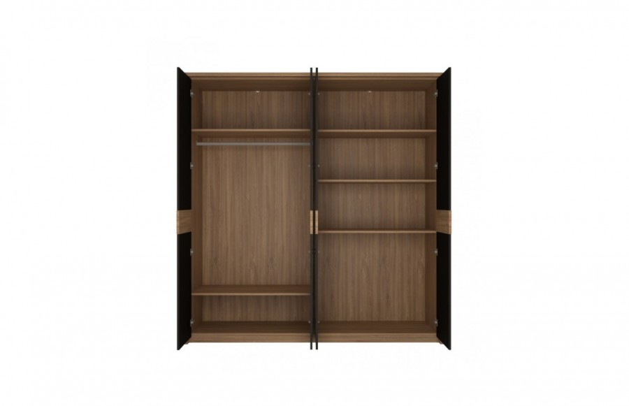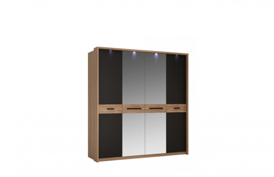 Szafa MONACO - to przestronne rozwiązanie na Twoją garderobę. Wyposażona w starannie zaprojektowane wnętrze, z dużą ilością półek, wieszaków i wnęk, by uporządkować ubrania i akcesoria. Lustrzane fronty optycznie powiększają sypialnię, a nowoczesne uchwyty dodają elegancji. System cichego domyku w zawiasach to praktyczne udogodnienie. Szafa MONACO to miejsce, w którym z łatwością pomieścisz całą swoją garderobę, zachowując porządek i styl w sypialni.