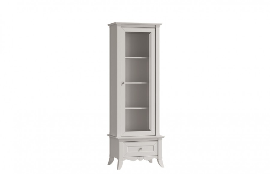 Witryna LILLY - to połączenie klasyki i elegancji, które zachwycają każdego miłośnika ponadczasowego stylu. Wysokie nóżki i delikatne metalowe uchwyty dodają witrynie lekkości i nowoczesności. System cichego domyku drzwi i szuflad gwarantuje komfort użytkowania. Witryna składa się z przeszklonych drzwi i szuflady, co zapewnia dużą przestrzeń do przechowywania oraz dużą swobodę w eksponowaniu ulubionych dekoracji oraz pamiątek. Jej klasyczny styl podkreślają ozdobne wieńce górne i dolne, metalowe uchwyty, ramkowe fronty oraz frezy. Dopracowane zdobienia, zwłaszcza ozdobne nóżki, nadają meblom elegancki i ponadczasowy wygląd, zaś wykonanie z naturalnej okleiny dębowej zapewnia trwałość i solidność mebla. Witryna z kolekcji LILLY to idealne rozwiązanie dla tych, którzy cenią sobie zarówno estetykę, jak i funkcjonalność w swoim wnętrzu.