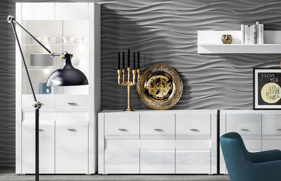 Witryna ARKO 04 - to połączenie minimalizmu i doskonałego wykonania. Jej jasna, neutralna kolorystyka sprawia, że doskonale pasuje do nowoczesnych i skandynawskich wnętrz, gdzie naturalność i przytulność są kluczowe. Fronty witryny ARKO wykonane z wytrzymałej płyty laminowanej są odporne na wilgoć, wysoką temperaturę i uszkodzenia mechaniczne, zapewniając długotrwałą jakość. Witryna jest podzielona na dwie części - górną z szklanymi półkami, które można dodatkowo oświetlić za pomocą LED, oraz dolną z dwiema szufladami i dwiema zabudowanymi szafkami z drzwiczkami. Całość uzupełniają chromowane uchwyty, dodając wyjątkowego charakteru. Witryna z kolekcji ARKO to idealne rozwiązanie dla tych, którzy cenią sobie zarówno estetykę, jak i funkcjonalność w swoim wnętrzu.