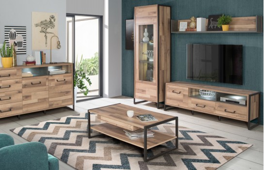 Witryna HUD - to nie tylko praktyczny mebel, ale także elegancki dodatek, który doskonale wpisze się w Twoje wnętrze. To miejsce, w którym możesz przechowywać i eksponować różnorodne przedmioty, jednocześnie dodając designerskiego charakteru pomieszczeniu. Witryna jest wyposażona w dwie stałe półki oraz dwie regulowane półki, co pozwala dostosować przestrzeń do własnych potrzeb. Główne cechy witryny HUD to przeszklenie wykonane z bezpiecznego szkła hartowanego, metalowy uchwyt ułatwiający otwieranie drzwi, stabilne, czarne metalowe ramowe nogi oraz design łączący nowoczesność z stylem industrialnym. Dodatkowo, istnieje opcja montażu oświetlenia LED, które podkreśla design mebla i tworzy wyjątkową atmosferę w Twoim wnętrzu. Witryna jest łatwa w czyszczeniu i utrzymaniu oraz doskonale komponuje się z innymi meblami z tej samej serii, tworząc spójną i harmonijną aranżację w pomieszczeniu.